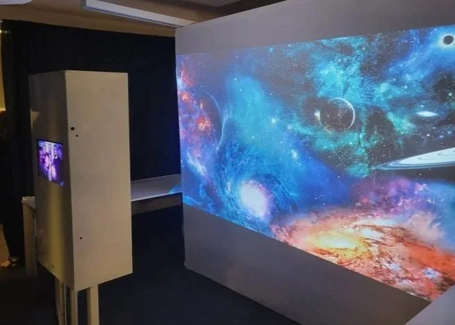 Projection Booth - where static backdrops disappear and your brand comes to life in real time. We project bold, immersive visuals directly onto the backdrop and your guests, creating instant, high impact photos or videos layered with color, motion, and personality.