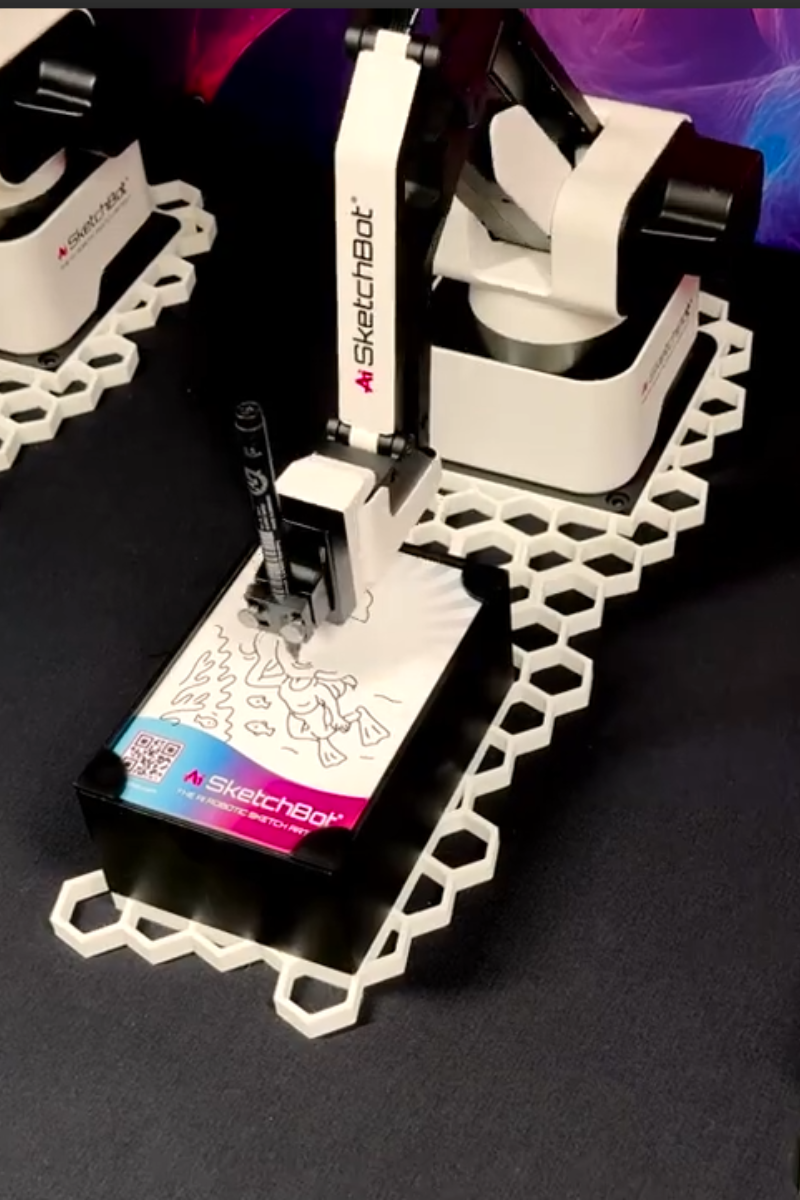There’s something wildly captivating about watching a machine turn into an artist. The room slows down. Phones come out. People cheer when the portrait is revealed.